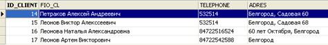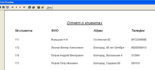 Первая таблица «Клиенты» содержит следующую информацию: номер клиента, ФИО клиента, адрес клиента, телефон клиента.