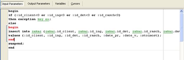 DataModule2->IBStoredProc5->ParamByName("ID_ING")->AsString=Form1->Edit10->Text;