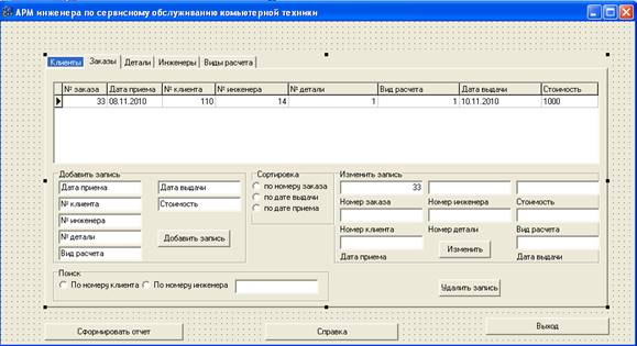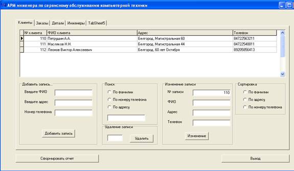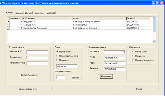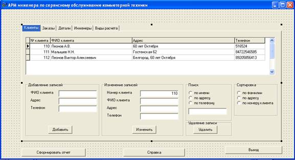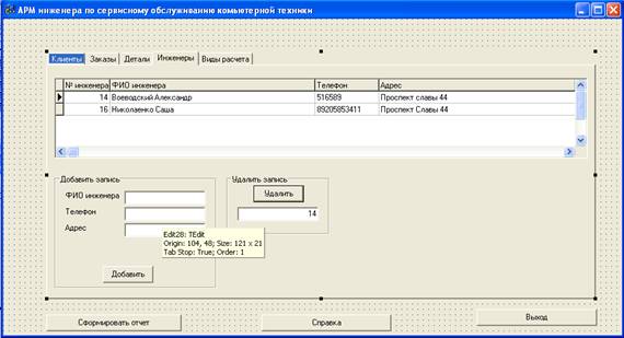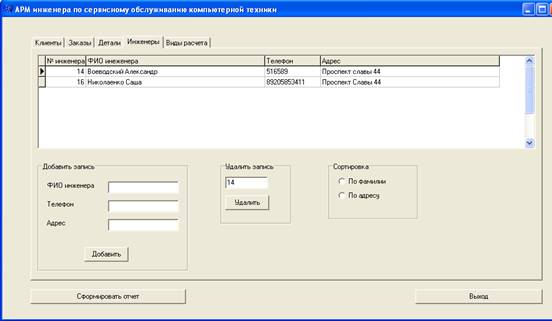 2.1 Назначение и основные возможности программного средства « Автоматизированное рабочее место инженера по сервисному обслуживанию компьютерной техники».
