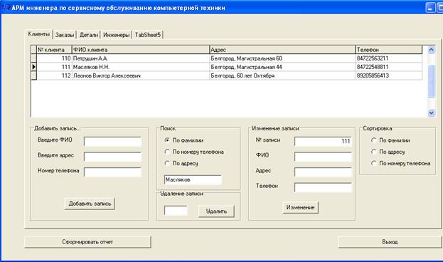 2. Изменение данных о клиентах, заказах, инженерах, деталях.