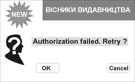 Малюнок 9. Вікно неправильного введення пароля.