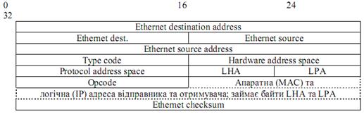 При передачі інформації через мережеве середовище відправник повинен знати як логічну адресу отримувача (адресу мережевого рівня), так і фізичну (адресу канального рівня). У мережах Ethernet, які працюють на основі протокольного стеку ТСР/ІР у якості логічної використовується 32-бітна ІР адреса, а у якості фізичної – 48-бітна МАС адреса. Ці адреси між собою ніяк не взаємопов’язані, і не існує механізмів перетворення одних адрес в інші. Тому для встановлення відповідності між МАС та ІР-адресою використовується протокол ARP (Address Resolution Protocol). Така відповідність встановлюється лише для тих ІР-пакетів, які необхідно відправити, оскільки лише у момент відправки формуються заголовки ІР та Ethernet. ARP не використовує для роботи ІР; він є самостійним протоколом на основі кадрів Ethernet.