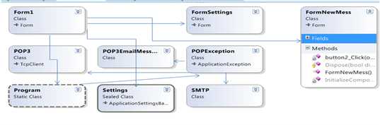 Программа состоит из методов, которые используются для подключения к серверам электронной почты, используя протоколы электронной почты, а так же для получения и отправки электронных писем.