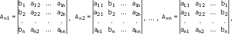 При решении систем линейных уравнений по методу Крамера используются формулы, в которых участвуют как главный, так и дополнительные определители системы: