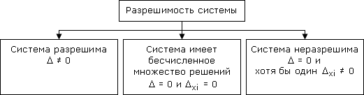 Но это не единственное ограничение. Из векторной алгебры известно, что система линейных уравнений имеет решение (однозначное) тогда и только тогда, когда ее главный определитель не равен нулю: Δ ≠ 0.