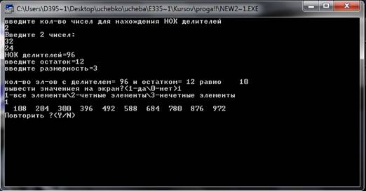 3.нахождение НОД и НОК для заданной совокупности натурального ряда;