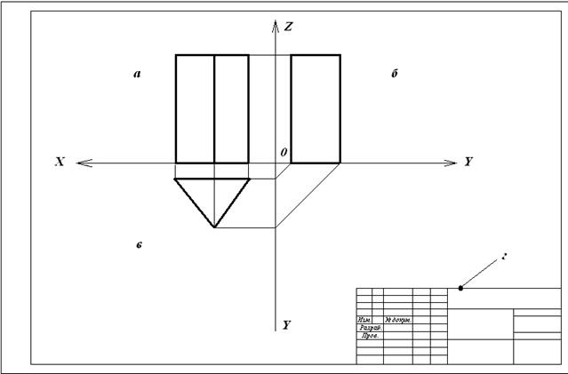 а – главный вид, б – вид слева, в – вид сверху, г – основная надпись.