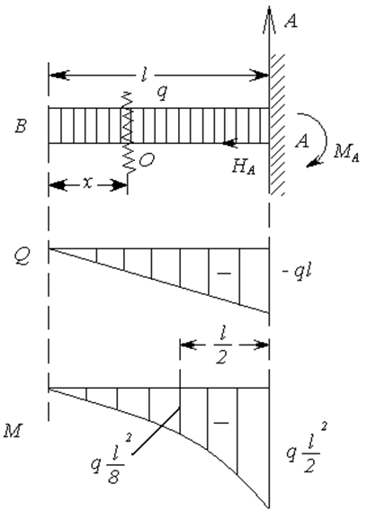 Задача 2. Построить эпюры для балки, нагруженной равномерно нагрузкой q и защемленной одним концом в стену.