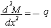т.е вторая производная от изгибающего момента по абсциссе сечения равна интенсивности сплошной нагрузки. Если q направлено вниз, то уравнение (6) будет: .