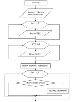 Визначити максимальний елемент серед елементів масиву В, які задовольняють умову хі < 0, та його порядковий номер.