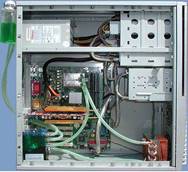 Первый из подобных методов, он же - наиболее поражающий своей эффектностью, это полное погружение внутренностей компьютера в охлаждающий раствор. При этом мы вообще полностью избавляемся от термосопротивления прилегающей к чипу пластины, в которой содержится вода, и всех прочих подобных термоинтерфейсов. Прямой контакт - тепло сразу передается в охлаждающую среду.