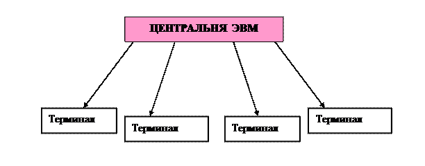 1. Централизованный - обрабатывает данные в одном месте, используя мощный компьютер и сложное программное обеспечение, установленное только на нем. Терминалы пользователей и автоматизированные устройства ввода первичных документов посылают данные на центральную ЭВМ для обработки, которая, если необходимо, предоставляет на терминалы обработанные данные.Преимуществами такого подхода являются меньшие затраты, лучший контроль за данными и программами (поскольку они находятся в одном месте), большая безопасность.Среди недостатков - большая сложность эксплуатации, высокие затраты на коммуникации (при большой удаленности терминалов).
