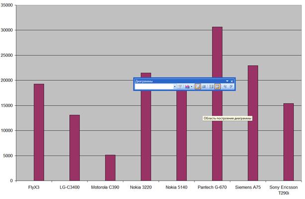 - Представить графически данные о продаже мобильных телефонов за текущий день.