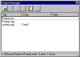 Файли, що утворять додаток – форми та модулі - зібрані в проект. Менеджер проектів показує списки файлів і модулів проекту та дозволяє створювати навігацію між ними. Можна викликати менеджер проектів , вибравши пункт меню View/Project Manager. За замовчуванням знову створений проект одержує ім'я Project1.cpp.