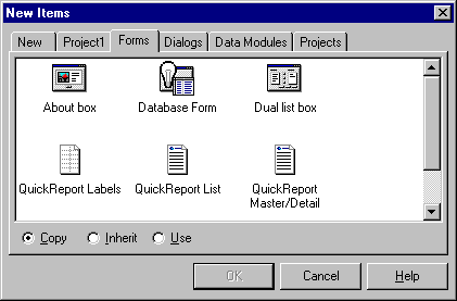 Для того щоб додати одну або більше форм до проекту , виберіть пункт меню File/New Form. З'явиться порожня форма, що буде додана до проекту. Можна скористатися пунктом меню File/New, вибрати сторінку Forms і вибрати підходящий шаблон з репозиторія об'єктів.