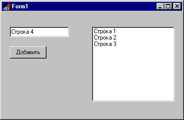 Для компіляції проекту в меню Run виберемо пункт Run. Тепер можна що-небудь увести в редагує поле, що, нажати мишею на кнопку Додати та переконатися, що вводять строки, що, додаються до списку.