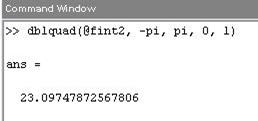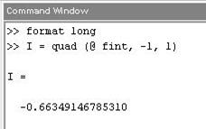 Для вычисления интеграла вызовем функцию quad, задав первым аргументом ссылку на функцию fint, а вторым и третьим — нижний и верхний пределы интегрирования.