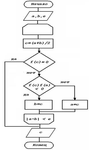 Метод половинного деления реализуется в виде следующего алгоритма: