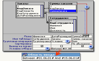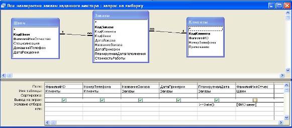 Рис. 9.3. Запрос – Все незакрытые заказы заданного мастера в режиме конструктор