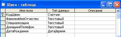 3.1 Описание структуры записи таблиц базы данных Ателье