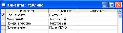 Рис. 3. Описание структуры записи таблицы Клиенты