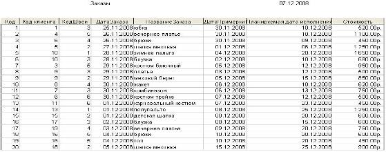 · Информация о заказе будет храниться в таблице «Заказы», причем, если один и тот же клиент заказал два изделия (например, юбка и меховой берет), то каждое изделие будет оформляться отдельной строкой заказа.