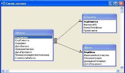 Рис. 7. Схема данных таблиц базы данных Ателье