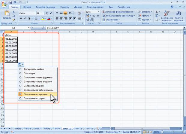 Рис. 4.16. Меню автозаполнения при работе с датами