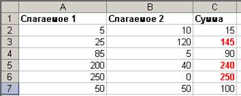 , и в появившемся диалоговом окне на вкладке Вид в поле Цвет выберите светлосиний цвет. Далее в этом же окне нажмите кнопку ОК, а затем нажмите кнопку ОК в окне Условное форматирование. Убедитесь, что цвет фона ячейки С8 изменился, он стал светло-синим (предполагается, что в таблицу введены те же числа, что и на рис. 9.31). Введите в ячейку В7 значение 25. Убедитесь, что цвет фона ячейки В8 изменился, он стал светло-синим.