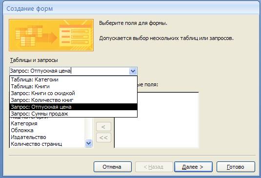 3. Далее распределяют поля генерального списка по базовым таблицам «Книги» и «Категории».(рис.1 и рис.2)