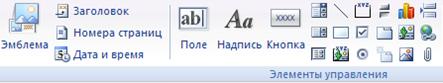 Элементами управления могут быть графические примитивы, надписи, рисунки и другие статические объекты, которые не изменяются при переходе между записями. Сюда же следует отнести текстовые поля, содержимое которых модифицируется при передвижении по записям. Элементы управления могут использоваться для ввода и отображения дат, а также для выполнения вычислений и вывода результата. Элементами управления являются кнопки команд , которые активизируют исполнение различных операций; объекты типа подчиненные формы (бланк таблицы, дочерней по отношению к форме); объекты, облегчающие восприятие данных, такие как календарь или счетчик; а также элементы пользователя (рис. 8).
