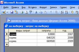 | Код поголовье | числовой | Вторичный ключ для связи с табл. "затраты" | Поле со списком. (1;2) Обязательное поле – "да". |