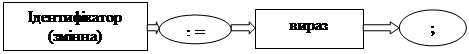 Оператор виконується так: обчислюється вираз (права частина) і отримане значення надається (присвоюється) ідентифікатору (змінній).
