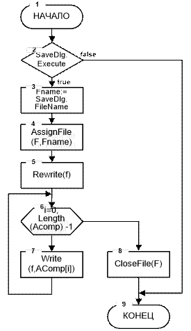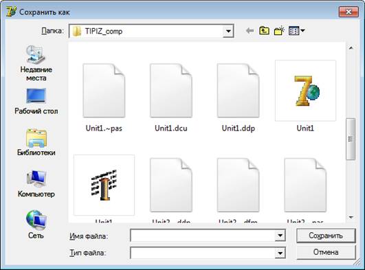 По сформулированной в предыдущем задании постановке должна иметься возможность выполнения манипуляций с файлами на жестком диске (открытие, сохранение, создание). Для этого разместим на форме объекты OpenDlg типа TOpenDialog (стандартный диалог открытия файла) и SaveDlg типа TSaveDialog (стандартный диалог сохранения файла). Эти объекты помогают автоматизировать процесс навигации по иерархии файлов и папок жесткого диска компьютера и выбора требуемого имени для открытия или сохранения файла.