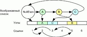 Заметьте, что теперь ссылки между элементами списка образуют кольцо, начинающееся с NullElem. Таким образом, ссылка с индексом NullElem показывает на первый элемент списка, а если очередная ссылка равна NullElem, то соответствующий элемент является в списке последним.