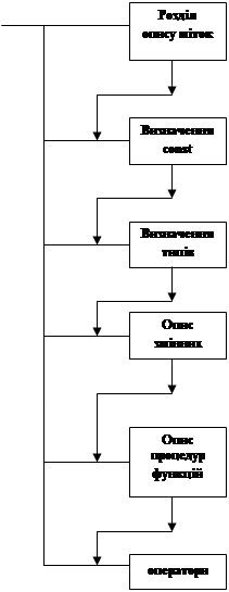 2) Блочна структура програми реалізується простими та структурними операторами.