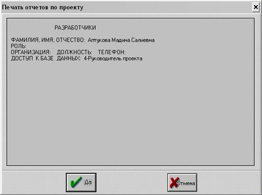 Рисунок Б.2 – Отчёт «Информация о проекте»