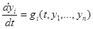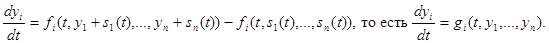 Очевидно, что gi(0,0,…,0) º 0, то есть последняя система будет иметь тривиальное решение yi(t) º0. Эта система носит название системы уравнений возмущенного движения.