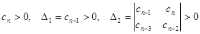 то для устойчивости системы необходимо и достаточно, чтобы при cn>0 все n определителей Гурвица D 1, D2, …, Dn, составленные по определенной схеме, были положительны.