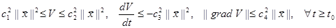 имеет знак, противоположный знаку V. Функция V удовлетворяет оценкам: