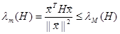 Наибольшее l M(H) и наименьшее lm(H) собственные значения матрицы H, если H положительно определена, будут вещественными и положительными.