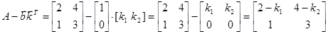 все собственные числа должны быть отрицательны. Зададим некоторые собственные числа l1,…,ln<0 для этой матрицы и из ее характеристического полинома найдем числа k1,…,kn, составляющие вектор