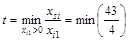 Разрешающий элемент таблицы x 12 выделим кругом, а разрешающий столбец и строку стрелками.