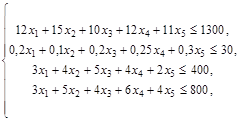 | Сырье | 12 | 15 | 10 | 12 | 11 | 1300 |