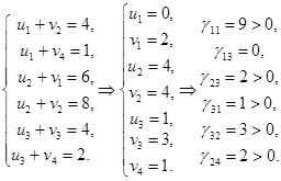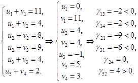 Итак, видно что в число занятых клеток следует ввести клетку (2,1).