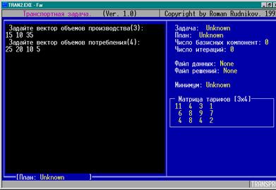 Цель задания: приобрести практические навыки решения транспортной задачи на ЭВМ с использованием прикладной программы TRAN2.