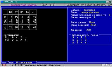 Решение транспортной задачи на ЭВМ автоматизирует работу по вычислению решений транспортных задач и на тестируемом входном условие получается за 3 итерации, как и при ручном вычислении.