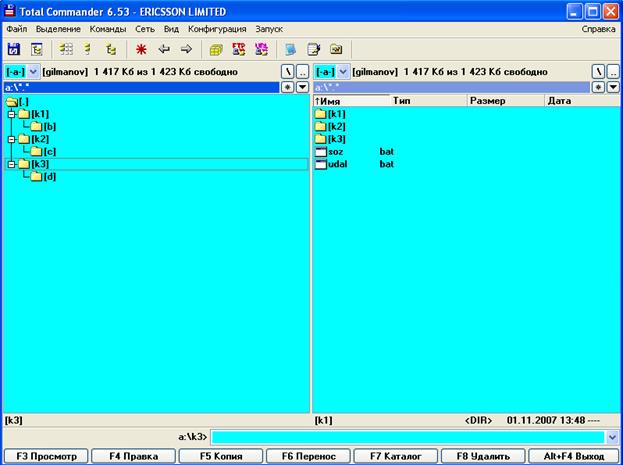 1) В корневом каталоге создаем каталог, нажатием клавиши F 7 и пишем название каталога К1, нажимаем Enter .
