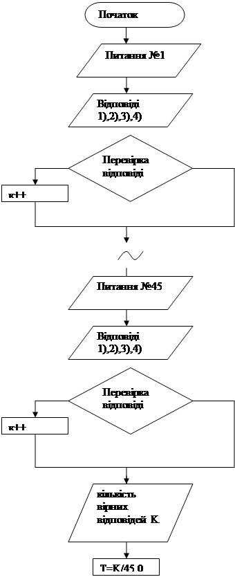 Також використовується унарна операція “++”,яка збільшує значення змінної на 1,яка виступає у вигляді накопичувача вірних відповідей