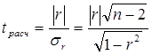 Значимость (существенность) линейного коэффициента корреляции проверяют на основе t-критерия Стьюдента. При этом выдвигается и проверяется нулевая гипотеза о равенстве коэффициента нулю, т.е. об отсутствии связи между х и у. Для этого определяется расчетное значение критерия: